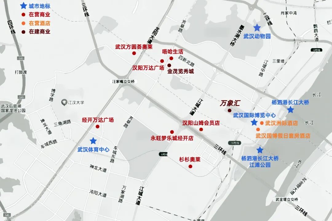 區(qū)域商業(yè)維度,四新?lián)碛小赣劳鷫魳烦菄鴥葮I(yè)績最強暨中國區(qū)旗艦」永旺夢樂城武漢經開、開業(yè)剛滿2年的漢陽山姆會員店、2025年9月新近開業(yè)的武漢杉杉奧特萊斯,以上商場可謂是四新商圈的「頭部玩家」。
