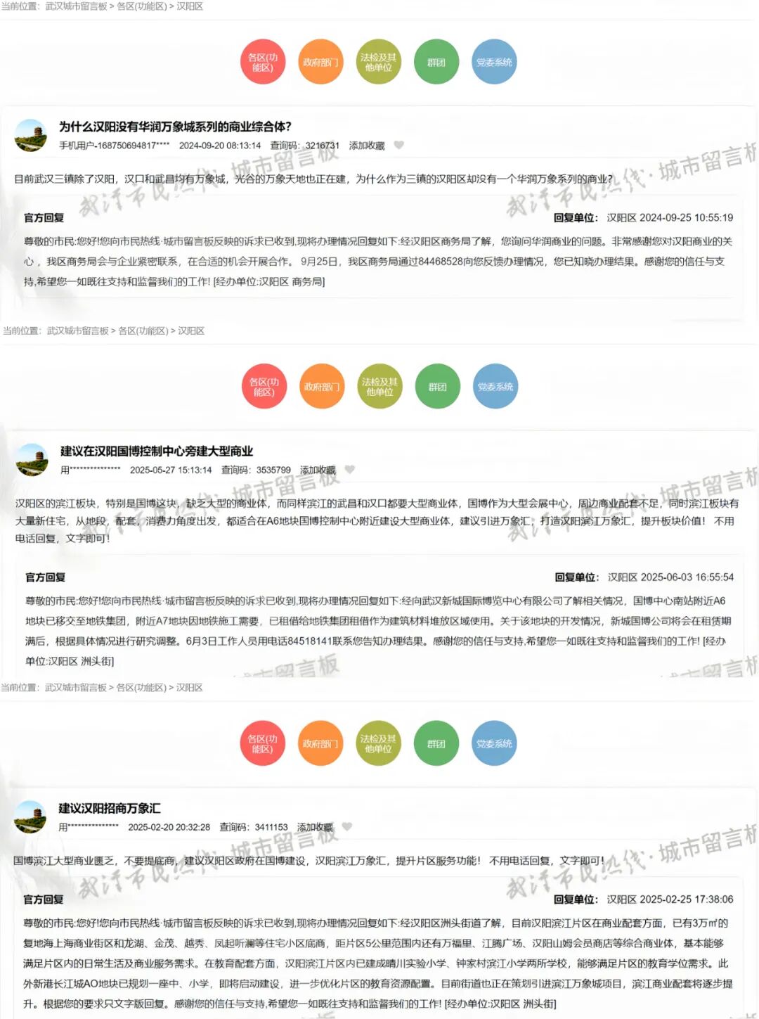 ○武漢城市留言板上有關漢陽與萬象商業(yè)的建言