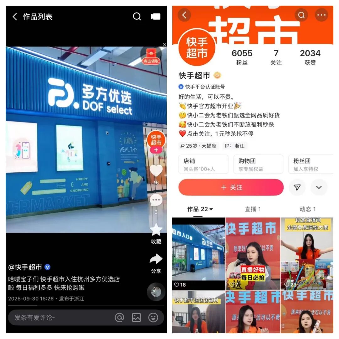 這種模式的核心優(yōu)勢(shì)在于“輕資產(chǎn)、低風(fēng)險(xiǎn)”:一方面,多方優(yōu)選作為浙江本土連鎖,已形成成熟的區(qū)域供應(yīng)鏈和用戶基礎(chǔ),且2025年起對(duì)標(biāo)胖東來模式,注重服務(wù)與性價(jià)比,與快手的下沉市場基因高度契合;另一方面,快手無需承擔(dān)門店租金、人員管理等重資產(chǎn)成本,可將資源集中于流量賦能與商品篩選。