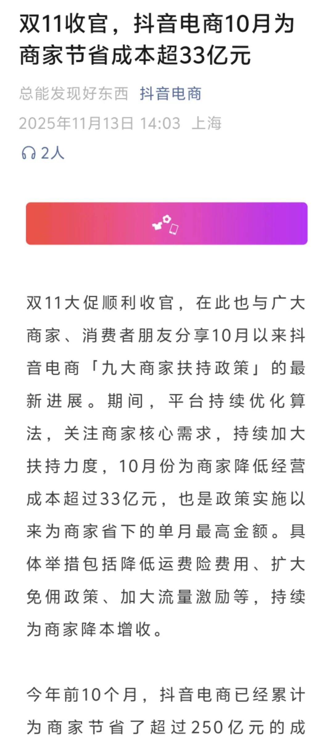 面向商家,各平臺(tái)紛紛加大扶持力度,抖音前三季度為商家降本220億元,10月單月就為商家節(jié)省成本33億元。