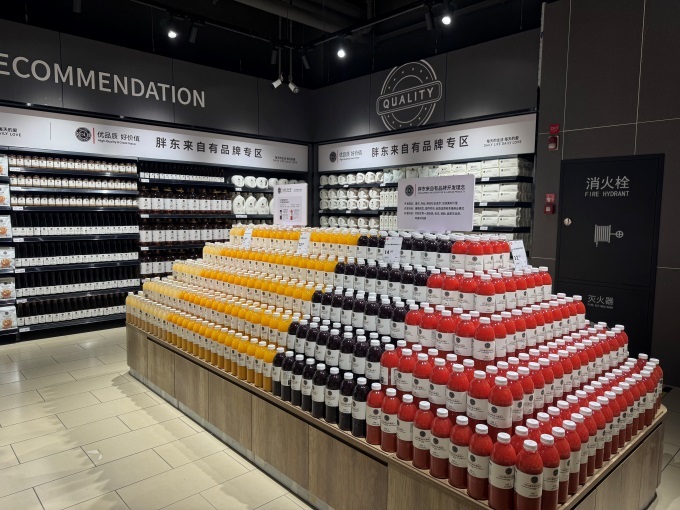 同時(shí),店內(nèi)引入胖東來(lái)自有品牌專(zhuān)區(qū),DL精釀啤酒、DL100%果蔬汁、DL水果燕麥脆等商品集中陳列,讓消費(fèi)者在家門(mén)口即可選購(gòu)胖東來(lái)同款品質(zhì)好物。