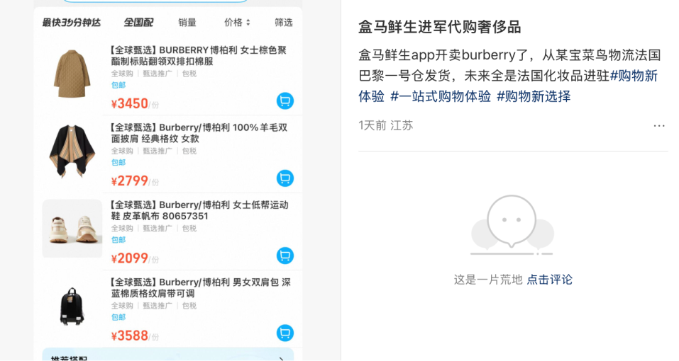 其實除了Burberry,盒馬最近在時尚品類擴充了不少品牌和產(chǎn)品。