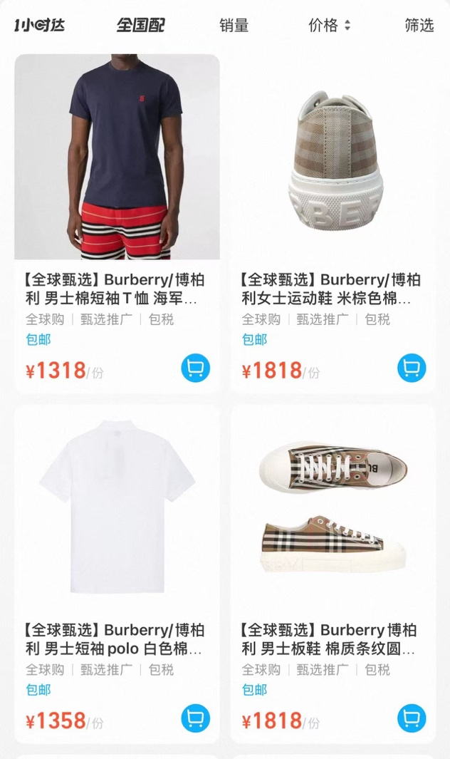 源Sight注意到,盒馬App上線了Burberry旗下的服裝、鞋類、背包、短袖以及披肩等產(chǎn)品。而除了Burberry之外,盒馬也開始銷售GUCCI的手提包、太陽鏡、運動鞋,范思哲拖鞋以及Michael Kors等輕奢品牌的產(chǎn)品。