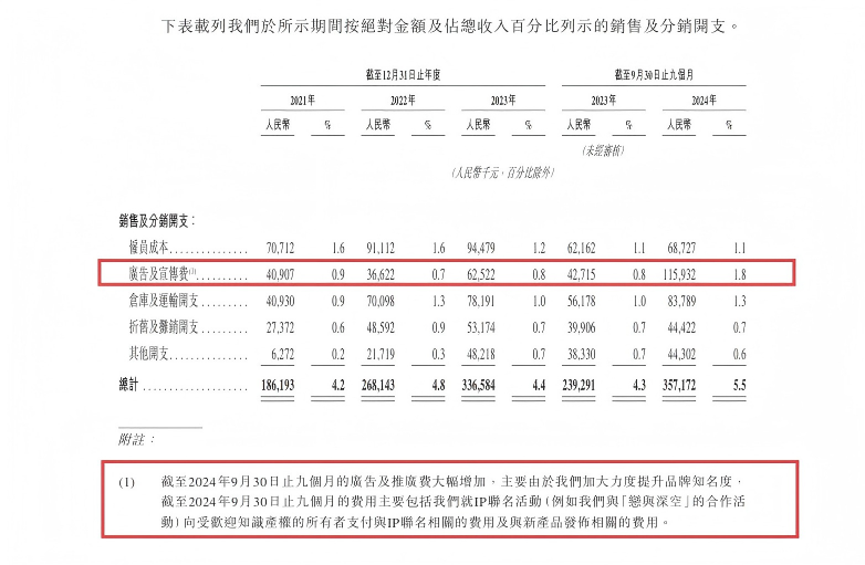 比如古茗在招股書中披露,2024年廣告及宣傳費較上年同期增長超過7000萬元,官方指出,該時間段內(nèi)費用的暴漲,主要與IP聯(lián)名有所關(guān)聯(lián),且給出了具體案例,“如我們與《戀與深空》的合作活動!