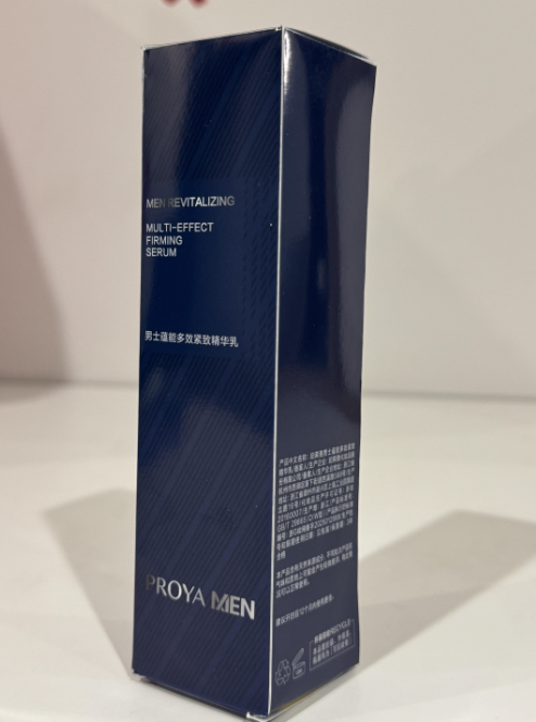 青眼注意到,三款產(chǎn)品包裝均呈現(xiàn)深藍(lán)色,顯著位置標(biāo)注“PROYA MEN”,并附有釋義:“PROYA MEN為產(chǎn)品系列名,意為珀萊雅男士”。