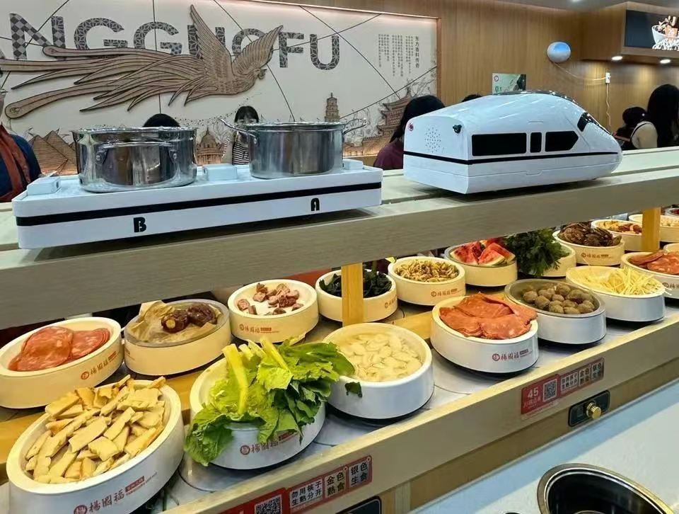 楊國(guó)福:我們基本就是快餐的模型,一個(gè)人的火鍋。價(jià)格這一塊,我們是給的建議價(jià)格。因?yàn)闂顕?guó)福的鏈條比較長(zhǎng),從機(jī)場(chǎng)到鄉(xiāng)鎮(zhèn),地理差異帶來(lái)房租等成本差異,北方是十幾塊錢一斤,到上海、廣東的話,可能就是30塊錢左右一斤。價(jià)格帶的差異還蠻大的。我們給建議定價(jià),是因?yàn)殚T店在每個(gè)地域的房租、人工成本都不大一樣,最終由加盟商自己定價(jià)。