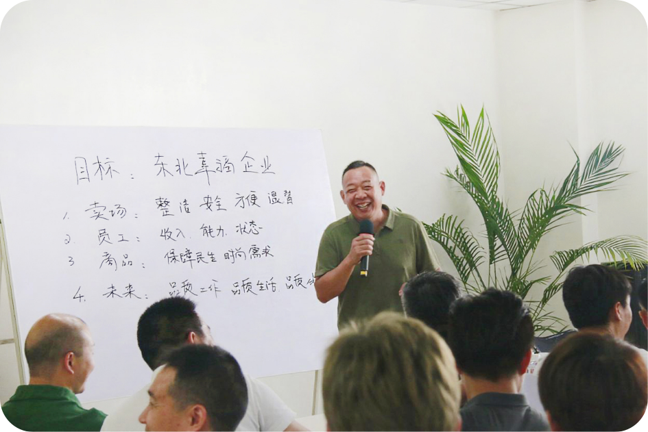 第三天,東來(lái)哥又給我們店長(zhǎng)、中高層主管和主力骨干員工進(jìn)行了一次分享。為我們?cè)O(shè)定了“經(jīng)營(yíng)要公平民主”的原則,目標(biāo)是成為“東北幸福企業(yè)”,并給出了具體標(biāo)準(zhǔn):賣場(chǎng)要整潔、衛(wèi)生、食品安全到位;安全要涵蓋員工安全、財(cái)產(chǎn)安全、消防安全、人身安全等。