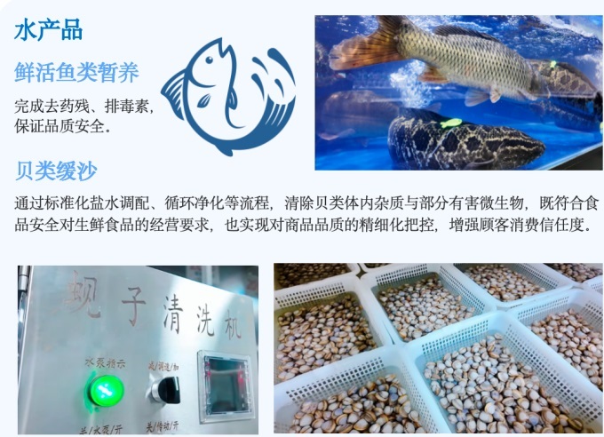 環(huán)境細(xì)節(jié)方面,以整潔為基、溫馨為魂,讓環(huán)境整潔有序又充滿人文溫度。營(yíng)業(yè)前和閉店后實(shí)行全區(qū)域清潔,生鮮和加工區(qū)域的菜板、魚缸每日徹底消毒清潔,熟食玻璃隨時(shí)擦拭,試吃臺(tái)及時(shí)清理垃圾、補(bǔ)充耗材,購(gòu)物車回收后及時(shí)擦拭扶手、清理筐內(nèi)衛(wèi)生。