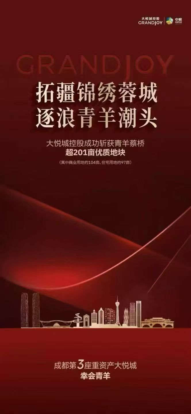 聯(lián)商快訊:11月19日,備受關(guān)注的青羊區(qū)蔡橋4宗土地正式最終“花落”大悅城,總耗資26.5億元。這意味著成都或?qū)⒄嬲瓉淼谌髳偝巧虡I(yè)綜合體。