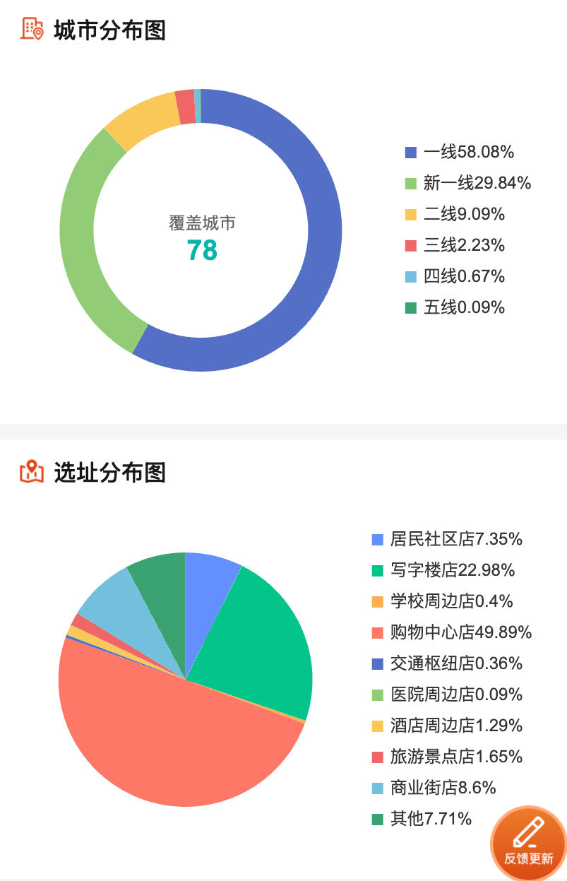 與多數(shù)咖啡品牌類似,Manner的門店主要布局在寫字樓與商場(chǎng)。上海作為其大本營(yíng),門店數(shù)量超過700家,占總數(shù)的三成多。
