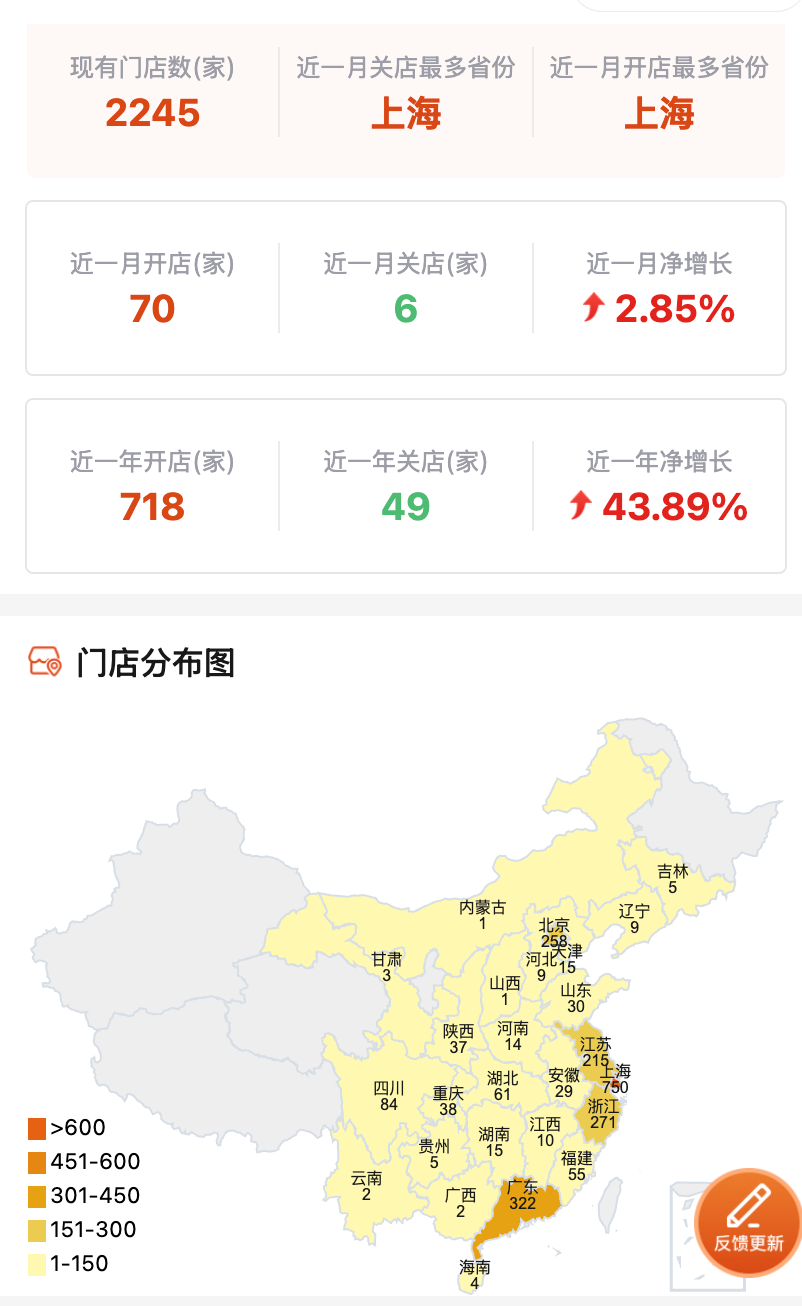 2024年,Manner新開666家門店,創(chuàng)下近幾年新高,據(jù)有哥餐鏈數(shù)據(jù)顯示,截至2025年11月5日,Manner門店總數(shù)達(dá)到2245家。