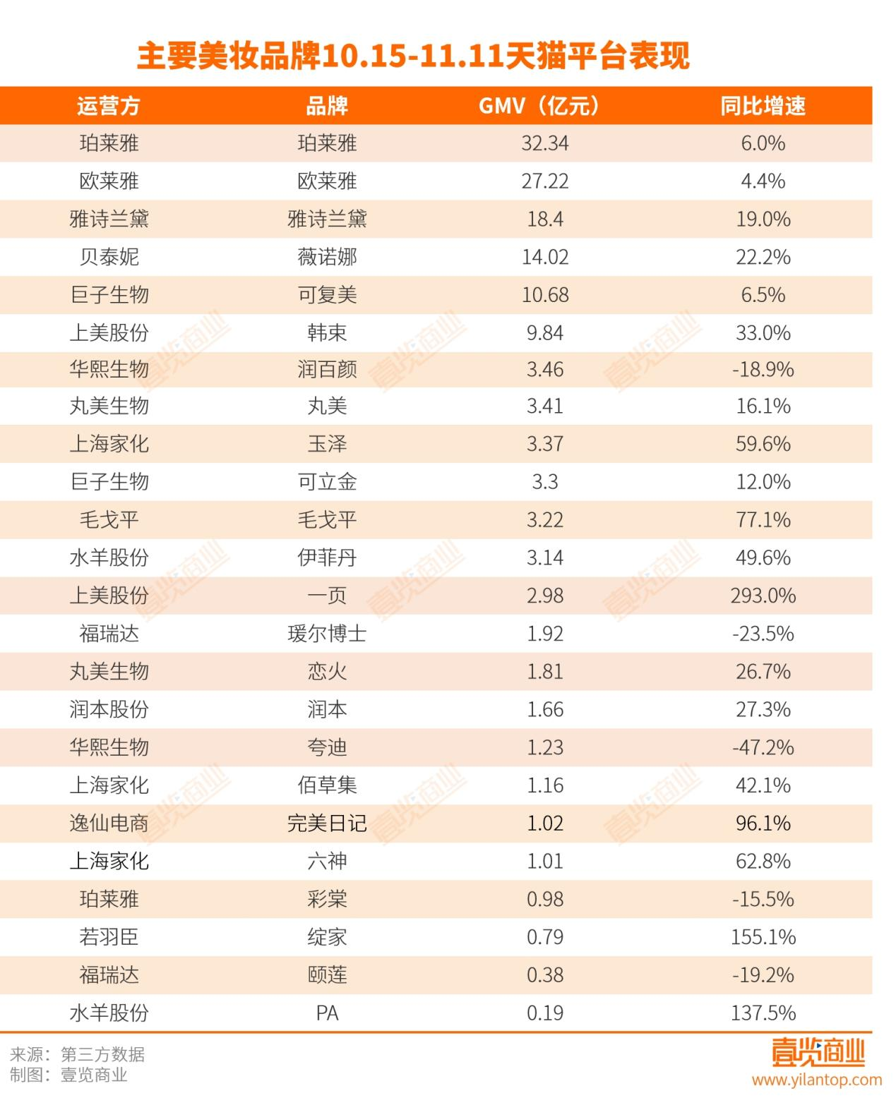 與此同時(shí),今年雙11,多個(gè)美妝品牌“翻車”,其中功能性護(hù)膚板塊最為突出:可復(fù)美同比下滑25.5%,潤(rùn)百顏跌幅達(dá)到39.9%,華熙生物旗下的夸迪更是同比下跌69.3%;福瑞達(dá)旗下瑗爾博士與頤蓮也分別下滑23.1%與 55.1%。