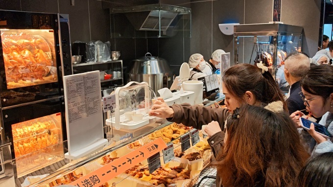 現制商品新增280支,包括40%貓山王榴蓮果肉打造的榴蓮千層蛋糕、融合馬斯卡奶酪與五種果蔬的“豐收的喜悅”歐包,以及關東煮、燒烤、烤腸、熱鹵,小吊梨湯等現烤現制美食。