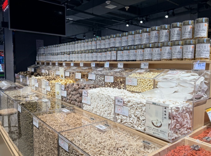 此外,干貨雜糧品類也進(jìn)行了全面升級,除常規(guī)的五谷雜糧及南北干貨以外,另外深挖了品質(zhì)生活的滋補(bǔ)相關(guān)品類,比如增加了藥食同源的品項,補(bǔ)充了高級海產(chǎn)滋補(bǔ)品。