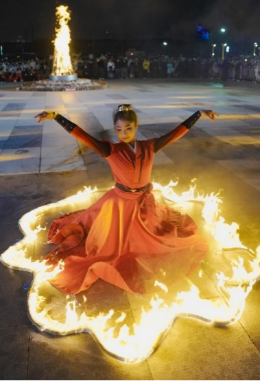 本屆非遺火秀表演以“薪傳之火-火舞狂沙-火耀星河”為敘事脈絡(luò),將節(jié)目串聯(lián)為完整的情感與文化體驗,使得觀眾沉浸在其中。在文化表達(dá)上,更首次將黃河地域文明與火文化深度綁定,構(gòu)建出有溫度、可共鳴的節(jié)慶記憶,塑造獨特的冬日文化體驗。整場活動以三大篇章循序漸進(jìn),層層展開: