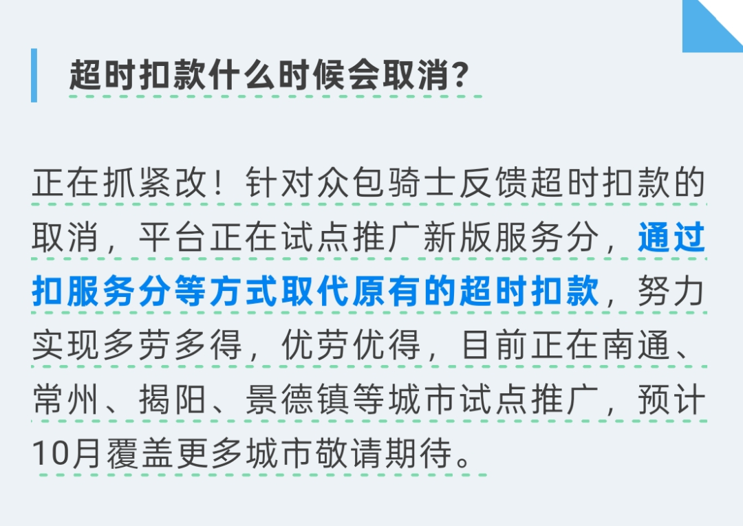 此外,值得一提的是,曾給無數(shù)騎手帶來心理壓力和安全風險的“超時罰款”,正在逐漸退出歷史舞臺。