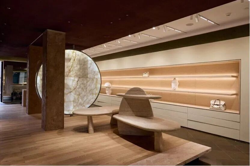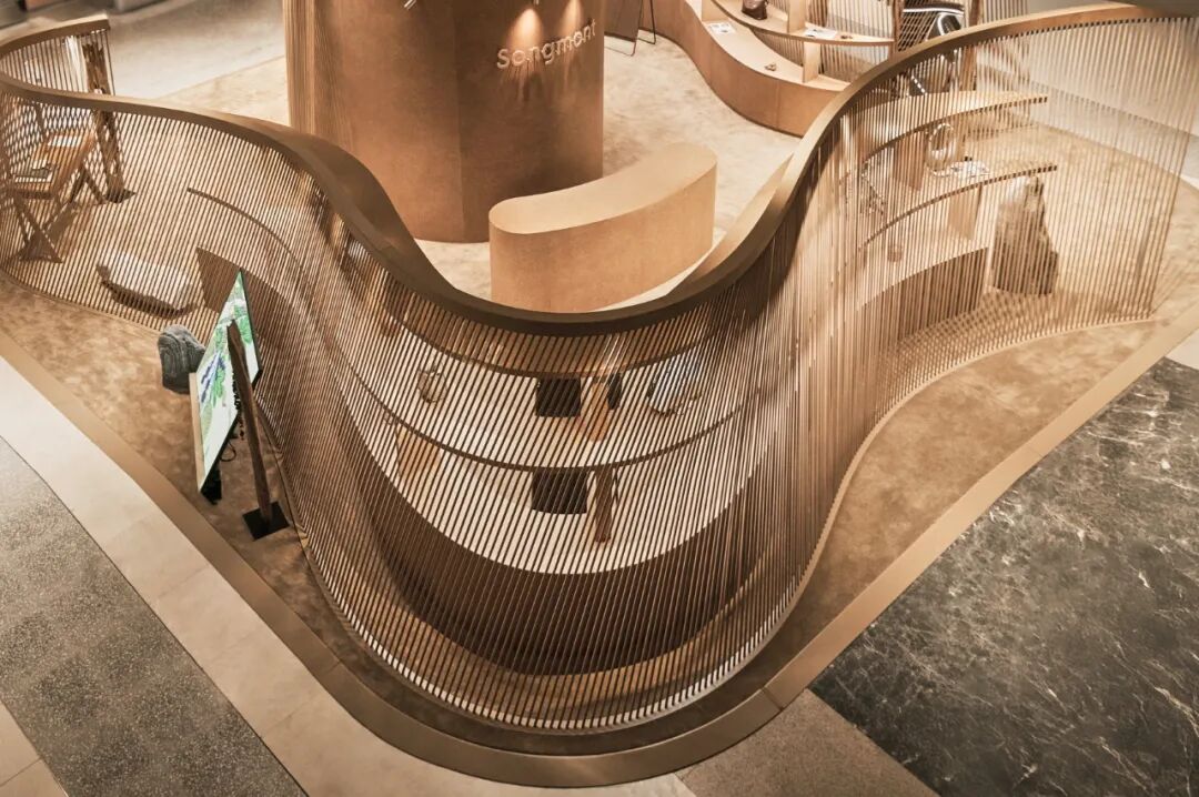 其線下門店的設計中也常常出現(xiàn)巖石、山、河灘、土壤等意象,2025年7月在泰國曼谷開業(yè)的快閃店同樣以中原的“香文化”為靈感,店內(nèi)的金色金屬與紗簾一同構成“香炷森林”——東方美學的形象在從外到內(nèi)的包裹中愈加清晰,某種程度上也構成了一道隱形壁壘。