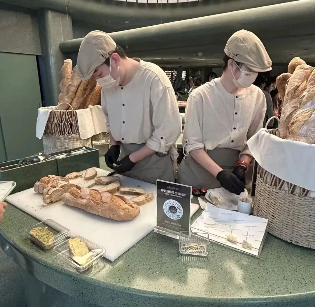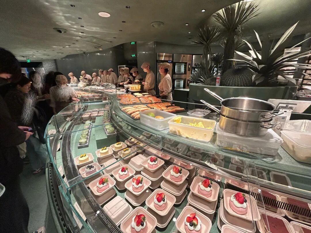 不過,這種全流程展示也對門店運營提出了更高要求。據(jù)職餐記者觀察,僅前場專職烘焙師就配置了20余位,疊加前廳服務(wù)與引導(dǎo)崗位,單店總?cè)肆σ殉^40人。