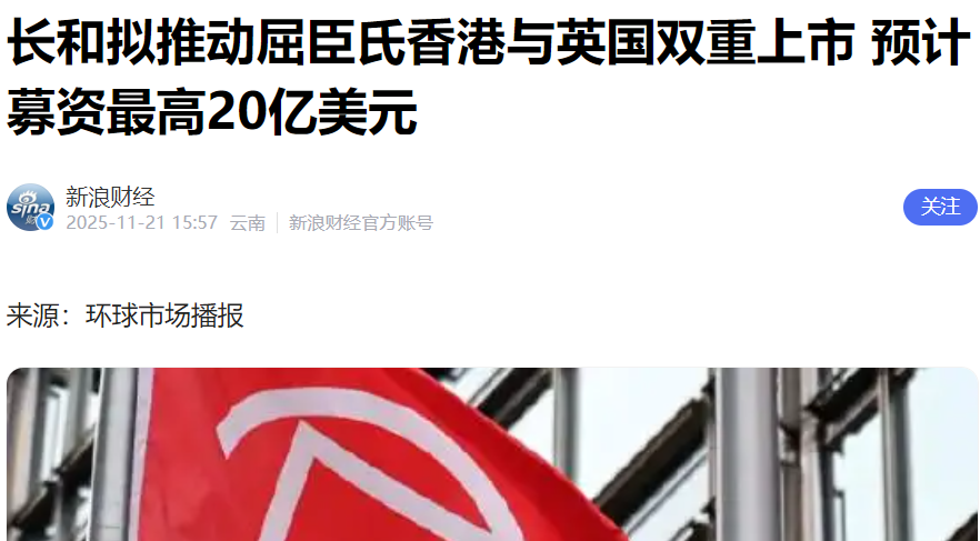 日前,環(huán)球市場(chǎng)播報(bào)在報(bào)道中援引知情人士消息稱,中國(guó)香港首家上市企業(yè)長(zhǎng)江和記實(shí)業(yè)有限公司(以下稱“長(zhǎng)和”,股票代碼:00001),正計(jì)劃在中國(guó)香港及英國(guó)兩地上市。