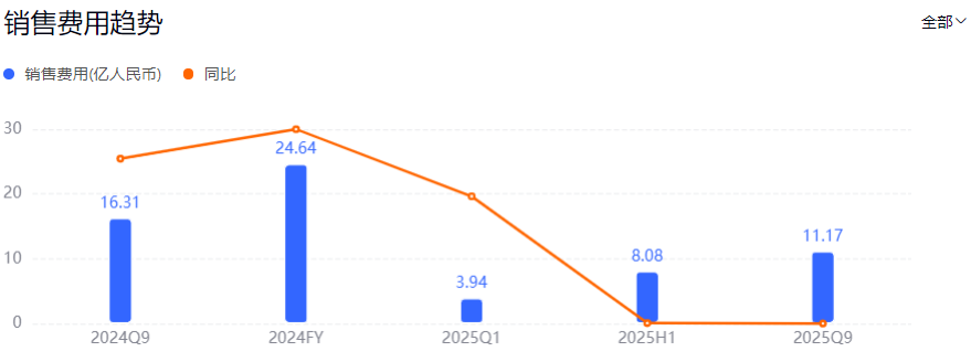 而華熙生物在董事長趙燕回歸一線后,狂砍銷售費(fèi)用。2025年前三季度,華熙生物銷售費(fèi)用同比減少了31.50%。但與此同時,華熙生物的營收也同比下降了18.36%,歸母凈利潤也同比下降了30.29%。