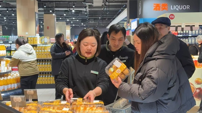 水果區(qū)在保障民生需求的基礎(chǔ)上,顯著增加中高端品質(zhì)商品。主推智利車?yán)遄覬JJ級(jí),實(shí)行枝頭采摘后1小時(shí)內(nèi)預(yù)冷,全程原箱空運(yùn)直達(dá),確保果實(shí)飽滿、脆甜多汁;丹東紅顏草莓則精挑細(xì)選,以紅潤(rùn)亮麗的顏值與酸甜適口的口感,成為顧客秋冬季節(jié)的甜蜜首選。烘焙區(qū)主打榴蓮千層蛋糕、葡式蛋撻、華夫餅、香蔥松松卷面包等現(xiàn)制商品,同時(shí)保留原味桃酥、棗泥蛋糕等傳統(tǒng)風(fēng)味糕點(diǎn),滿足不同年齡層消費(fèi)者的味蕾需求。熟食區(qū)則推出北京烤鴨、熱鹵甜腸、九多肉多招牌香辣豬蹄等熱銷單品,更有0.99元/個(gè)的實(shí)惠小籠包,成為市民早間餐桌的熱門選擇。