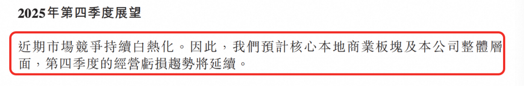 美團(tuán)在第三季度財(cái)報(bào)中特別為第四季度展望留了一個(gè)說明,預(yù)計(jì)四季度的經(jīng)營虧損趨勢將延續(xù),可見美團(tuán)自己也不相信市場競爭能很快停止。