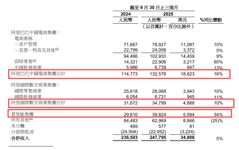 11月25日,阿里巴巴發(fā)布2026財年第二季度(指2025年7月-9月)業(yè)績,集團當(dāng)期收入為2477.95億元,同比增長5%,若不考慮已處置的高鑫零售和銀泰業(yè)務(wù)收入,同口徑收入同比增長15%。