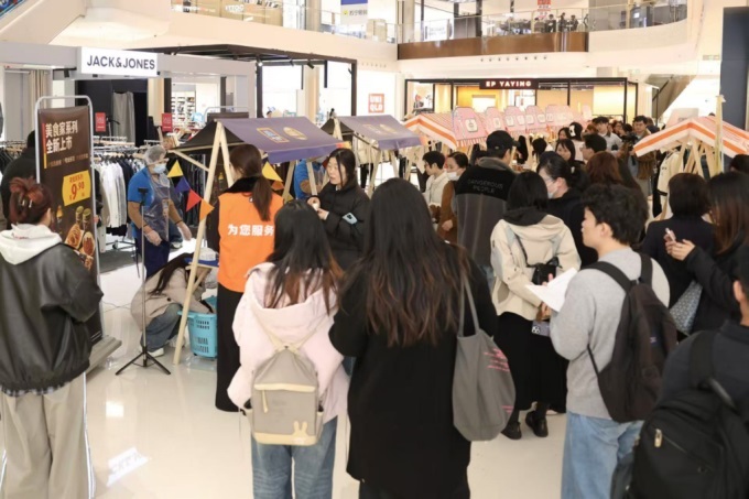11月28日,全球連鎖硬折扣社區(qū)超市奧樂齊聯(lián)合昆山金鷹國際購物中心,在商場內(nèi)開展了“街區(qū)美食節(jié)”線下美食市集活動。