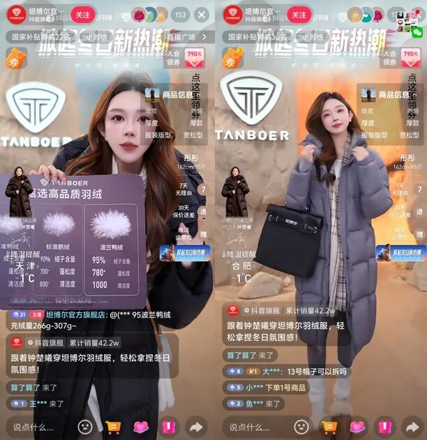 “魔鏡洞察”數(shù)據(jù)顯示,今年10-11月抖音羽絨服總銷售額同比增長59.5%;雙11期間,天貓賣出了超過1000萬件冬季羽絨服,波司登、鴨鴨等品牌開售首日成交額破億,京東運動羽絨服成交額則同比增長4倍。