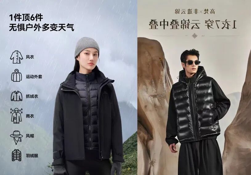 比如伯希和的三合一羽絨服系列以“1件頂6件”為賣點,高梵的黑金5.0系列“云錦鵝絨服”則打出“1衣7穿”的口號,滿足春、秋、冬季穿衣需求。盡管高梵黑金5.0系列產(chǎn)品售價并不便宜,達到3000元以上,但“1衣N穿”的賣點,以及適配不同場景、季節(jié)的設計理念,卻能給消費者帶來更多“實用感”。