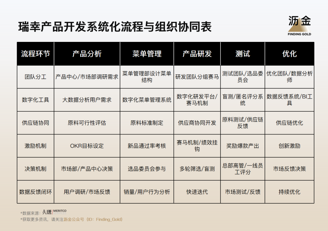 瑞幸的組織方式更接近互聯(lián)網(wǎng)公司:扁平化、項目制、并行協(xié)作。新品項目以“小組制”的方式同時推進,研發(fā)、供應(yīng)鏈、運營、營銷在同一條時間線上同步更新。