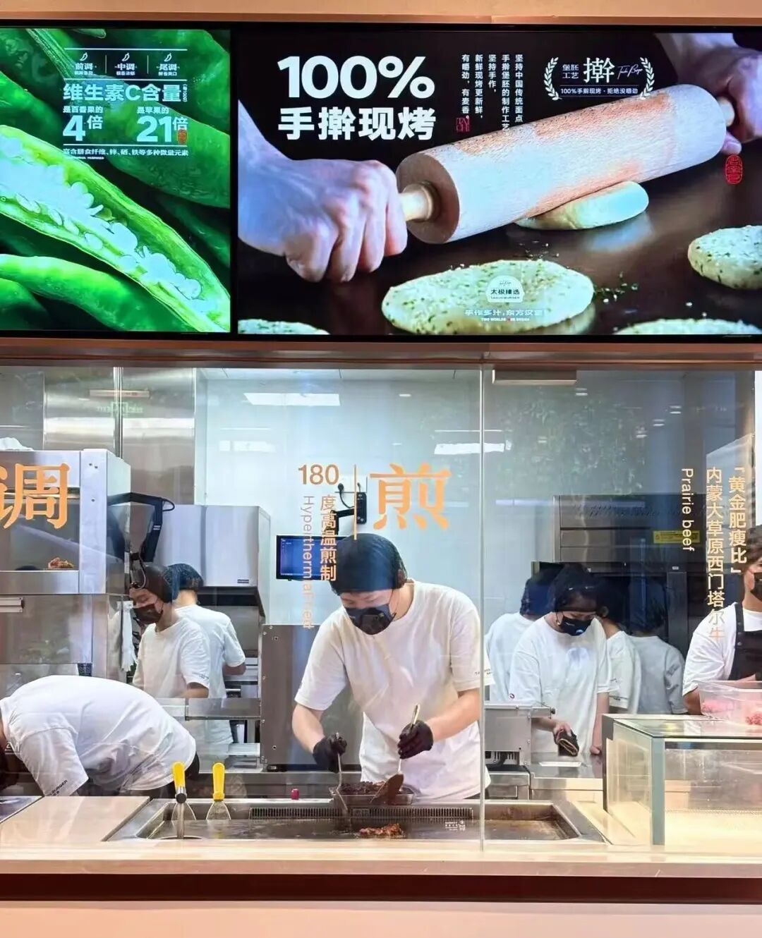 首先,為了打造差異化,太極堡堅持肉餅手工現(xiàn)做、現(xiàn)煎,面餅現(xiàn)搟現(xiàn)烤,這一決策直接推高了人工成本。