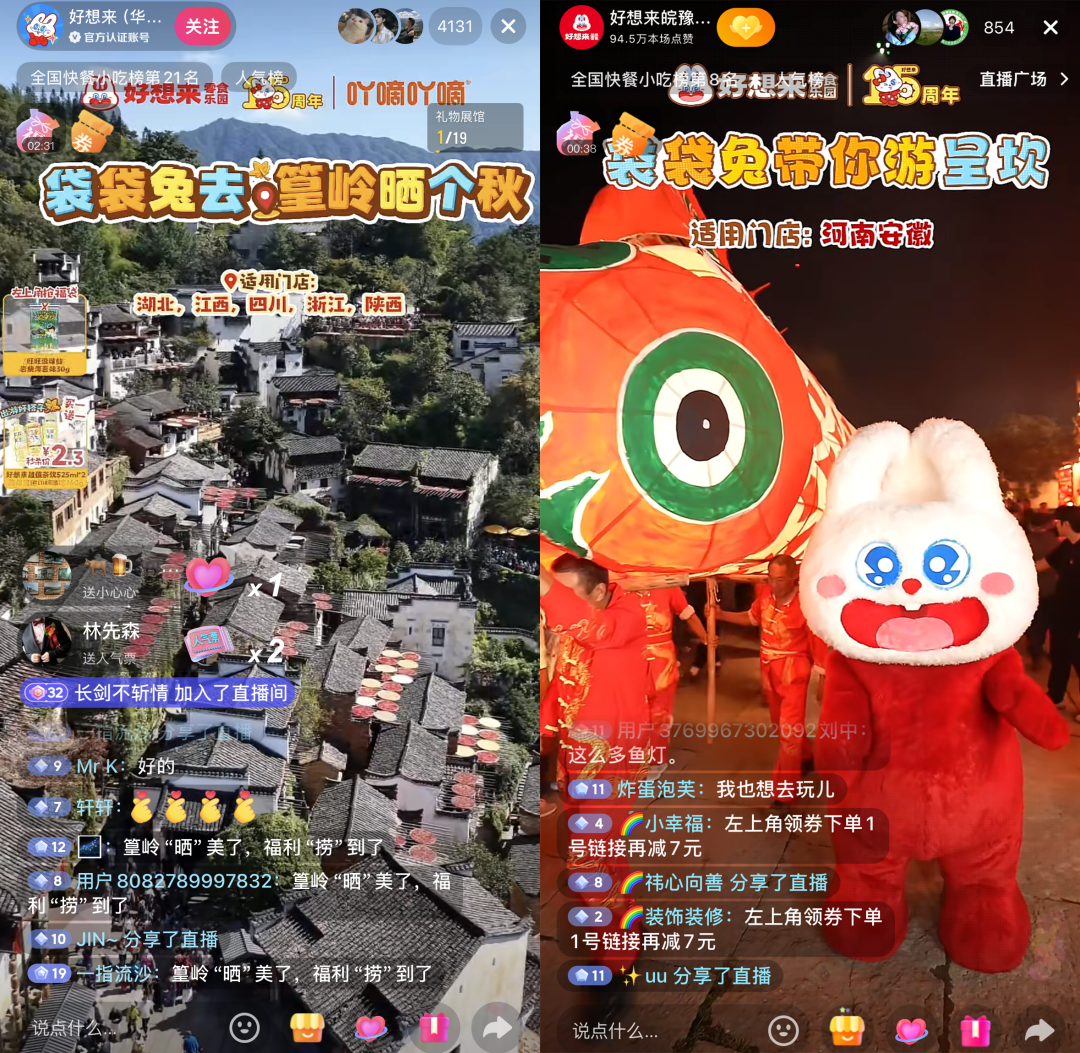 而近期,國民級零食零售連鎖品牌好想來給出的答案,是一場覆蓋全國六大文旅地的“袋袋兔的奇妙秋游”直播活動。