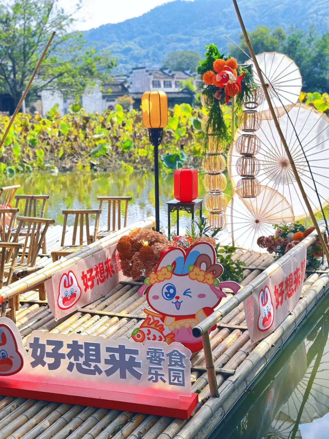 作為好想來的核心IP,品牌形象“袋袋兔”在前期的宣發(fā)中就完成了多次“變身”: 如黃山呈坎專場的漢服魚燈造型、江西婺源專場的民族服飾造型等,與地域特色形成呼應;直播現(xiàn)場,主播也會換上當?shù)靥厣珚y造 —— 婺源專場的曬秋文化、敦煌專場的絲路風情……讓品牌符號與文旅場景自然融合。