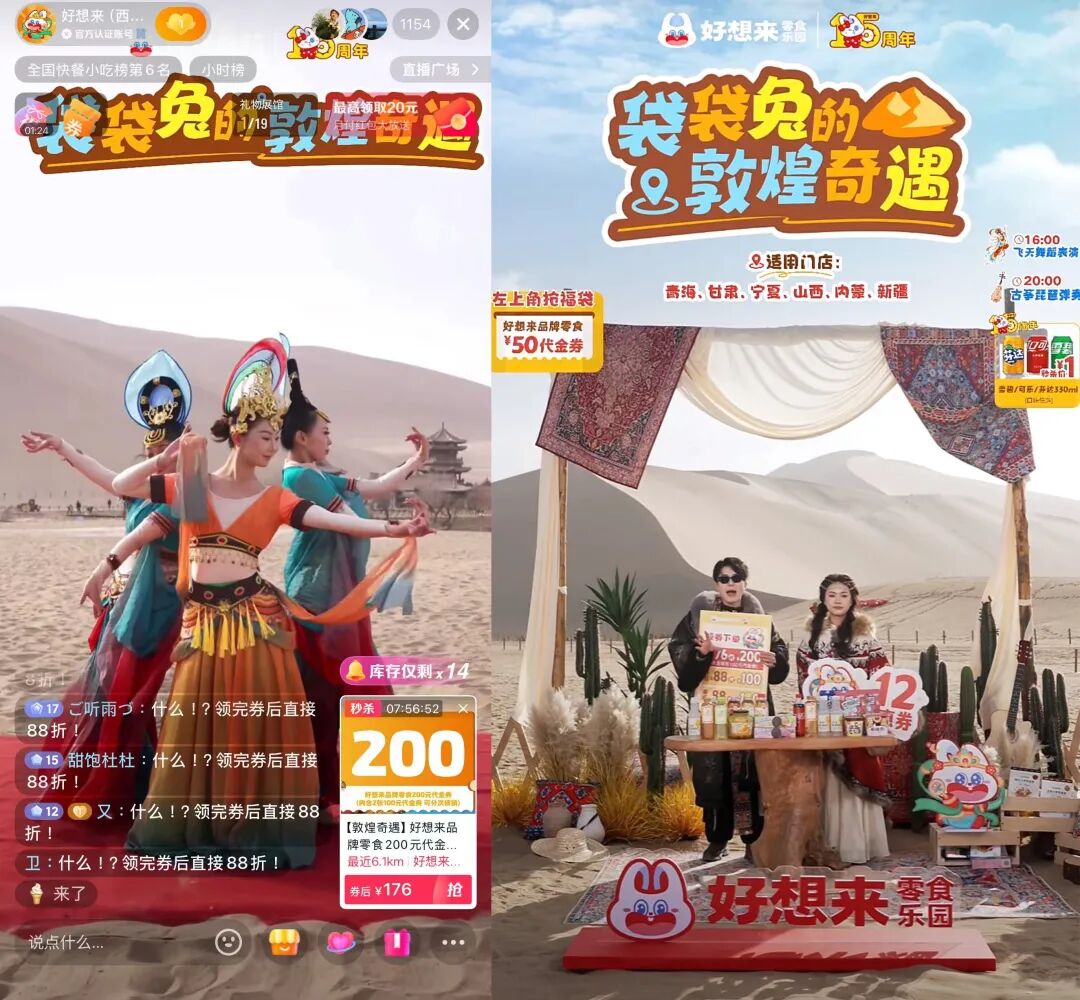 這場好想來的“零食+文旅”直播,更像是一次沉浸式場景創(chuàng)新實驗——先打造一個有吸引力的場景,再將產品自然融入其中,讓用戶因為場景價值而留下,因為產品契合需求而購買。