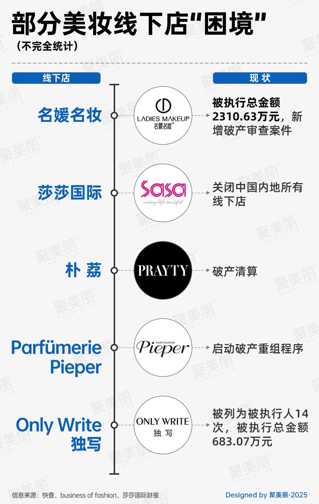 除名媛名妝外,新型美妝連鎖品牌樸荔、德國知名香水與美妝連鎖店P(guān)arfÖmerie Pieper等同樣面臨破產(chǎn)清算局面。種種不利局面似乎都指向線下渠道目前正面臨嚴峻的生存挑戰(zhàn)。