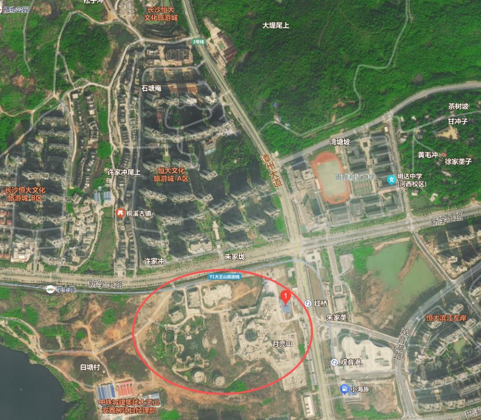 根據交易公告,拍賣標的為“長沙恒大童世界旅游開發(fā)有限公司名下三宗娛樂康體用地及地上在建工程、附著物”,三幅地塊總面積約17.2萬平方米,土地性質為娛樂康體用地,土地使用期限至2056年12月6日屆滿。
