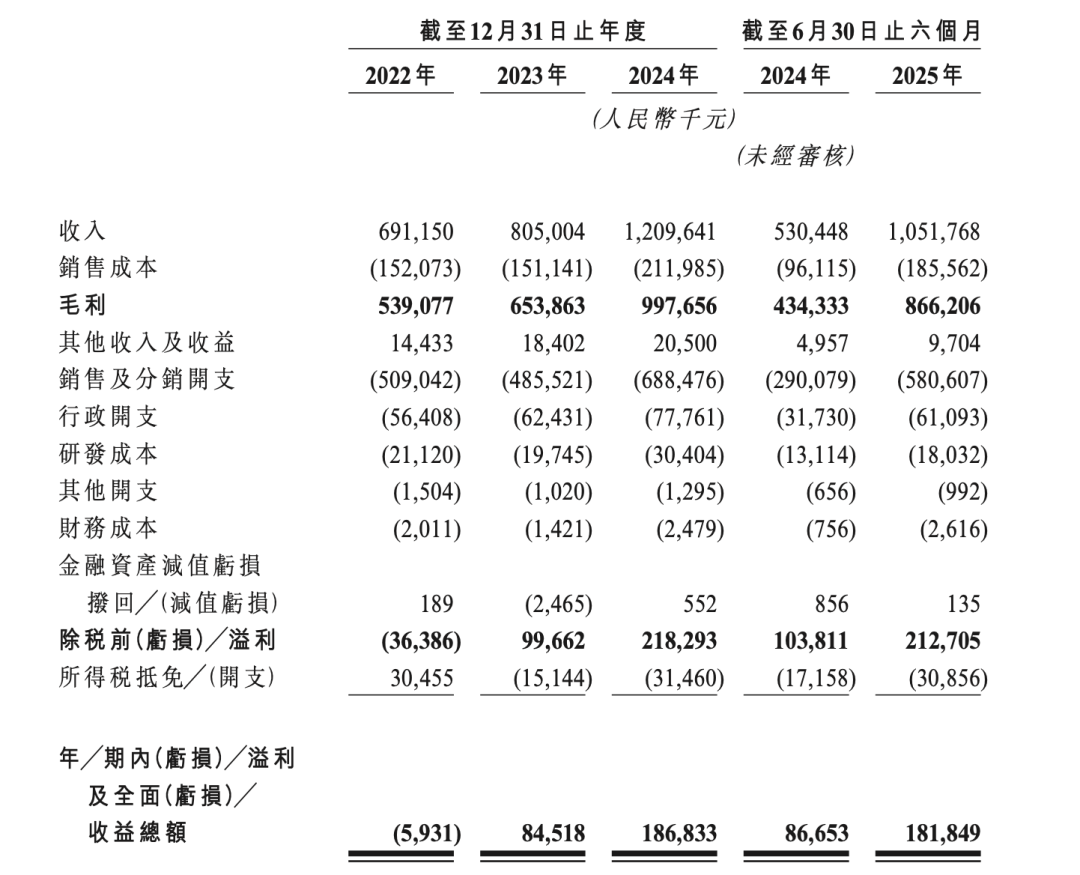 今年上半年,林清軒的營收從2024年同期的5.3億元增加98.3%至10.52億元,經(jīng)調(diào)整凈利潤亦從2024年同期的0.92億元增加117.4%至2億元,已幾乎與2024年全年盈利規(guī)模持平。
