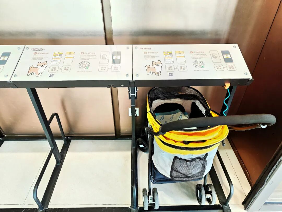 B面,運營方對于進入商場內(nèi)的寵物做出了適應規(guī)定,如寵物身高限定、入館務必乘車及止步兒童游樂區(qū)、餐飲店、超市區(qū)域等,并為進入商場內(nèi)的愛寵人群提供了寵物直梯、寵物推車、寵物背包租借等服務。