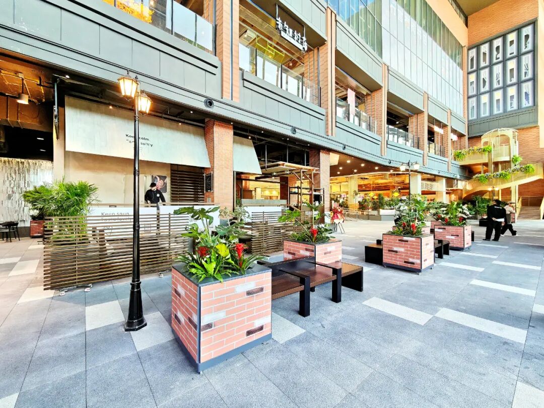 不僅有以上服務內(nèi)容,密集布置于戶外區(qū)域與商場各樓層公區(qū)的「休息區(qū)」,及在商場外及屋頂設置的「吸煙區(qū)」,皆是永旺夢樂城有別于國內(nèi)大多數(shù)商場的標志性服務內(nèi)容。