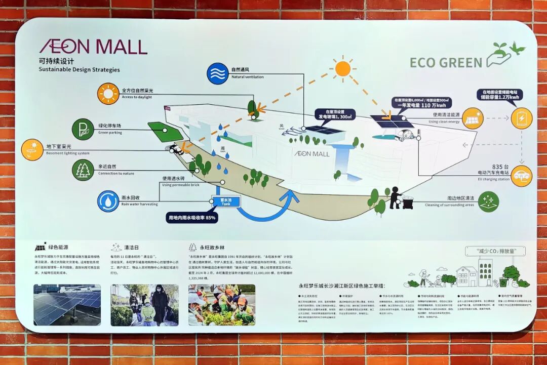 作為采用可持續(xù)設計的「最新一代永旺夢樂城」,項目還采用安裝發(fā)電玻璃與地面儲能電站、鋪設透水磚與雨水回收系統(tǒng)等,有效提高綠色能源及再利用資源的使用效率,也契合中國政府倡導的可持續(xù)發(fā)展政策。