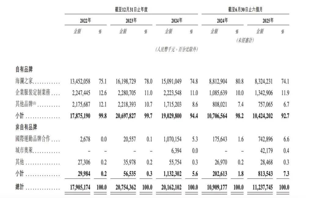 海瀾之家自有品牌,圖源招股書
