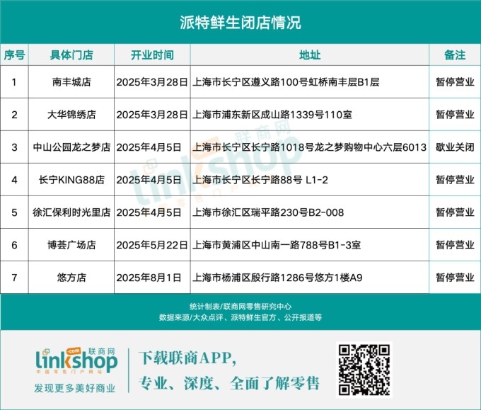 盒馬擴(kuò)張時(shí)期,背后有阿里的資金輸血、供應(yīng)鏈體系與流量扶持,可承受長期虧損;而派特鮮生雖獲得2500萬美元天使輪融資,但在10家門店月虧超200萬元的壓力下,資金很快告急,2025年10月的再融資嘗試以失敗告終,最終只能全面退出實(shí)體門店。
