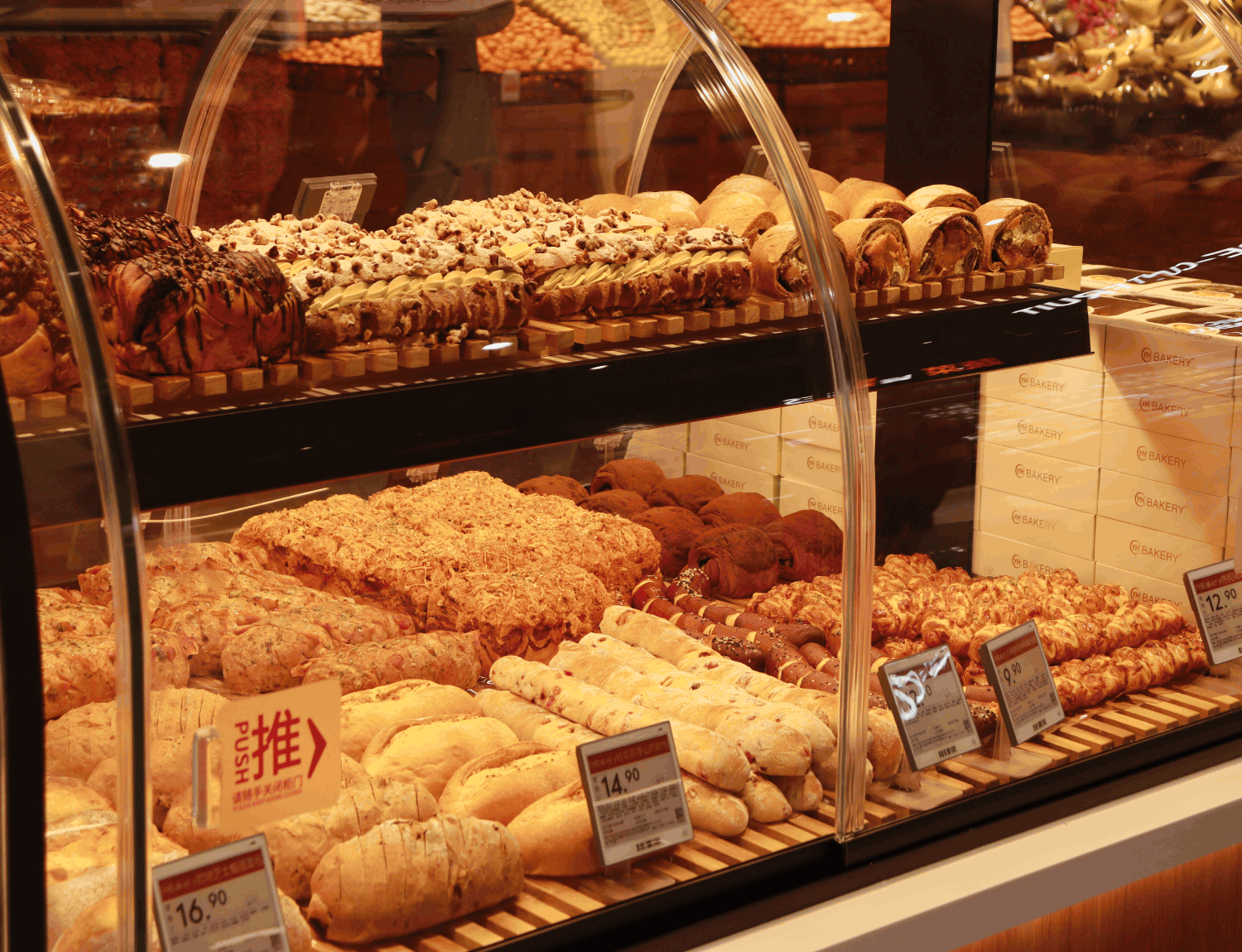 烘焙區(qū)經(jīng)過全面擴容,引入眾多特色爆品,主打健康概念與極致質(zhì)價比。主推的半斤榴蓮肉榴蓮千層、核桃滿滿、豐收的喜悅歐包等烘焙產(chǎn)品備受青睞。尤其是25粒草莓奶油盒子蛋糕,專為甜食愛好者打造:精選當(dāng)季新鮮草莓手工現(xiàn)切,保留脆嫩爆汁口感,搭配蓬松的戚風(fēng)蛋糕、順滑輕脂奶油與自制酸甜草莓醬,四層豐富口感與超高顏值,使其迅速成為治愈系的網(wǎng)紅甜品。