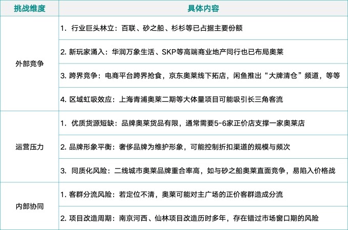 盡管德基進(jìn)軍奧萊賽道有著一定的“天時(shí)地利”,但這條路并非一片坦途,還是面臨內(nèi)外多重挑戰(zhàn):