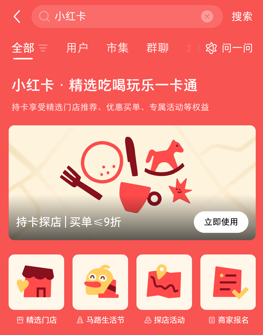 今年9月,小紅書正式上線了本地生活會員業(yè)務“小紅卡”,以“吃喝玩樂一卡通”的鮮明定位,強勢切入本地生活服務賽道。具體而言,其將基于平臺內用戶的真實討論數(shù)據以及商戶口碑,篩選出一批 “小紅卡精選門店”,而用戶購買小紅卡年卡后,就能享受到包括平臺精選門店推薦、優(yōu)惠買單、專屬活動等會員福利。