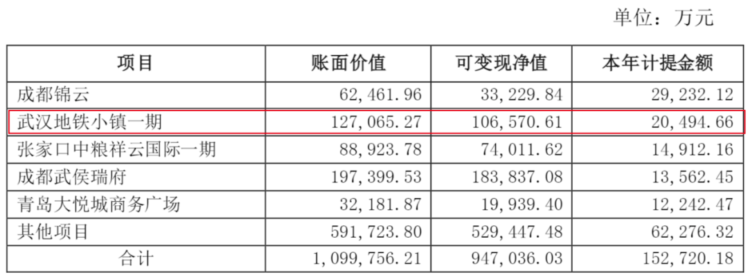 而武漢地鐵小鎮(zhèn)一期,就是侵蝕大悅城利潤的典型項目之一。據(jù)「子彈財經(jīng)」不完全統(tǒng)計,2022年,大悅城對武漢地鐵小鎮(zhèn)一期計提資產(chǎn)減值2.05億元;2024年,又對其計提了近3億元減值。