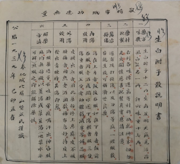 圖1 我太公1939年寫的藥方原稿