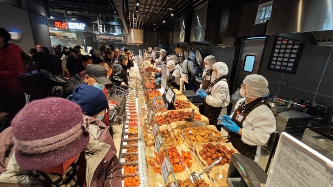 熟食區(qū)引入胖東來同款牛肉干等網(wǎng)紅產(chǎn)品,并增加現(xiàn)烤羊肉串、現(xiàn)做肉餅、韓式炸雞等深受歡迎的風(fēng)味美食,明檔廚房現(xiàn)場制作。