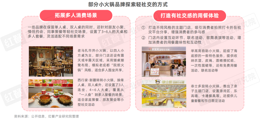 4.輕社交:一人食和輕社交并行發(fā)展,部分品牌從桌型、套餐、體驗等方面滿足社交需求